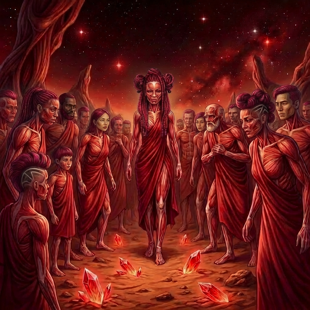 From above, the Nail Plate looms. It is brittle, cracked, flaking. The Keratinocyte children cling to it, their growth stunted, their surfaces dulled by illness spreading quietly through their world.